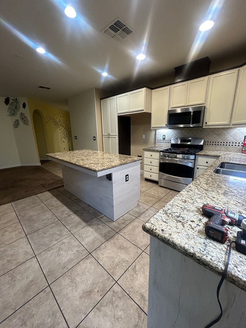 - Spacious kitchen cabinets